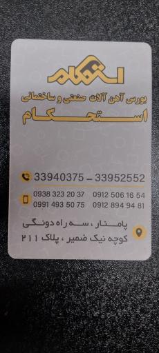 آهن آلات استحکام (آهنفروشی) در محله ارگ - پامنار تهران و خیابان نیک ضمیر واقع شده است. این یکی از شانزده فروشگاه آهنآلات در محله ارگ - پامنار تهران میباشد و از نظر موقعیت جغرافیایی در نزدیکی مراکز مهمی مانند بیمارستان سپیر و بازار بزرگ رضا و همچنین دایی دیزی، پارس آلومینیوم، شال و روسری مدلینا، کنیسه حاداش و برش لیزر حمید قرار گرفته است.