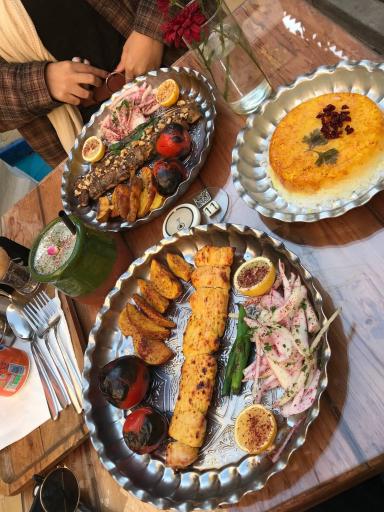 غذا خوب بود . حجمش به نظر کمتر از حجم ملمع پلو تو منو بود . یکمی هم سیب زمینیش خوش نمک بود ..ولی در کل خوب بود . آش ماست عالی بود . ماست و خیار عالی ..دوغ هم خوشمزه بود . محیط یکم کوچیک و باریک هست ولی خب تو تراس نشستیم خوب بود دید به پایین 🙏