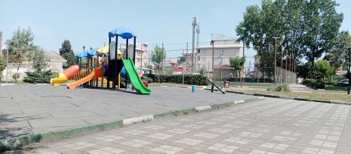 یه پارک جمع و جور داخل محله دارای وسایل بازی برای بچهها و یه زمین چمن مصنوعی برای فوتبال