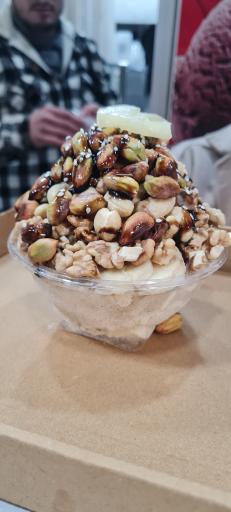 ما دو تا معجون تک نفره سفارش دادیم. کلی مغز روش ریخته بودن و بستنی هم خیلی خوشمزه بود. بهتر بود مغز و بستنی با هم ترکیب میشد. خوشمزه بود فقط اینکه مواد جدا از هم بودن. بستنی بعد لایه موز و بعد یه عالمه مغز.