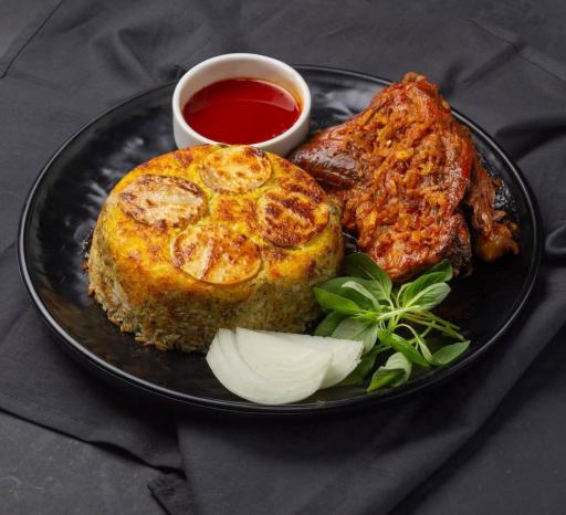 ما ته چین سفارش دادیم. عملا مرغ لاپلو بود. برنج مشخصا ایرانی نبود و اثری از تخم مرغ و ماست داخل مواد ته چین نبود به همین خاطر پلو خشک بود و مجبور بودی سس مرغی که کنار غذا بود رو روی برنج بریزی که اونم عملا بو زهم مرغ میداد. پلو زرد بود ولی من بوی زعفران از غذا حس نکردم. عملا مزخرف ترین ته چین عمرم بود. ماست هم که تو منو زده بود ماست و سیر، بعد فهمیدیم ماست و موسیره، بعد که سرو کردیم متوجه شدم موسیر رو نشونش دادن اصلا قیمت با کیفیت همخوانی نداشت