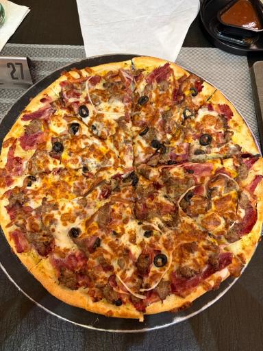 سفارش ما پیتزا بیف و بیکن با موهیتو بود که واقعا عالی بود. رستوران پارکینگ رایگان هم داره.