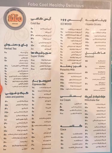 فابو کافه (کافیشاپ) در محله دردشت تهران و خیابان بوجاریان واقع شده است. این کافیشاپ یکی از بیست و هفت کافیشاپ در محله دردشت تهران میباشد و از نظر موقعیت جغرافیایی در نزدیکی مراکز مهمی مانند شهربازی شهر کودک شاپرک و مرکز خرید شاپرک و همچنین رایانه کمک، کلینیک دامپزشکی غزال، بیمه تعاون، ورودی مترو ایستگاه دانشگاه علم و صنعت و نان سنگگ دردشت قرار گرفته است. همچنین با توجه به نظراتی که کاربران در اپلیکیشن نشان به این مکان دادهاند میتوان گفت این کافیشاپ یکی از کافیشاپهای خوب این منطقه میباشد. با توجه به نزدیکی این کافیشاپ به ایستگاه مترو دانشگاه علم و صنعت، برای دسترسی راحتتر و کمک به داشتن هوایی پاکتر، میتوانید از وسایل حمل و نقل عمومی برای مراجعه به آن استفاده کنید.