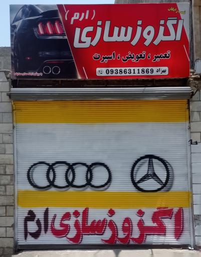 اگزوز سازی ارم در محله رجب آباد کرج و خیابان دوم شرقی واقع شده است. و از نظر موقعیت جغرافیایی در نزدیکی مجتمع تجاری آتلانتیک و همچنین تک لقمه، تهیه غذای خوشه، بستنی باقلوای آقکند، هایپر مارکت ماهان و مجتمع مسکونی مهندسین قرار گرفته است.
