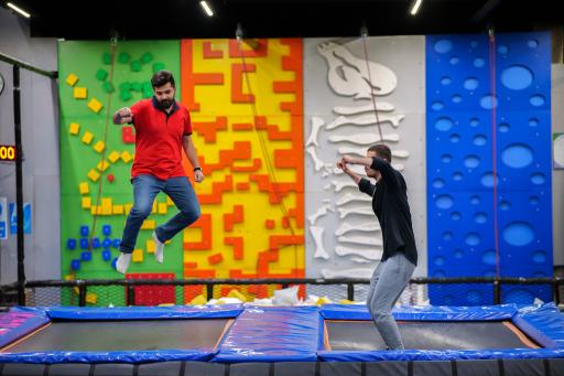 هلیوم پارک پر از بازیهای منحصر به فرد و جذابه، بازیهایی که شما رو به بیشتر پریدن، بلندتر خندیدن و تحرک و شادی وادار میکنه. سن و سال مهم نیست، اینجا میتونید از سستی و کرختی فاصله بگیرید و یه فعالیت بدنی سالم و مهیج داشته باشید. روی انواع ترامپولین (صفحههای فنری که میشه روی اونها چند متر بپرید) بازی کنید و از بسکتبال، والیبال و وسطتنها روی ترامپولین لذت ببرید. به جز اینها کلی تفریح حرکتی دیگه مثل صخرهنوردی، فوتبال در حباب، مسیر نینجا و... هم داریم. همچنین میتونید کودکانتون رو برای بازی، به محوطه اختصاصی زیر 5 سال بیارید.