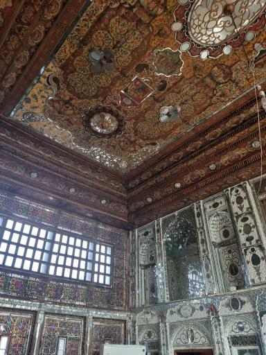 نمایش موقعیت منزیباترین خانه سنتی که تا حالا مانندش رو ندیدم (سقف چوبی با نقوش بسیار زیبا، درهای نقاشی شده ، گرهچینیهای پنجره ،گچکاری و آینهکاری های دیوار)