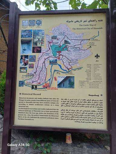 نقشه راهنمای شهر تاریخی ماسوله در ماسوله واقع شده است. و از نظر موقعیت جغرافیایی در نزدیکی مراکز مهمی مانند موزه شرفی ماسوله، چشمه تاریخی اسد محله و بازار ماسوله و همچنین رستوران ماه سالار کوه، گلزار شهدای ماسوله، کلانتری 14 ماسوله، شیرینی سرای میخک و مرکز بهداشت ماسوله قرار گرفته است.