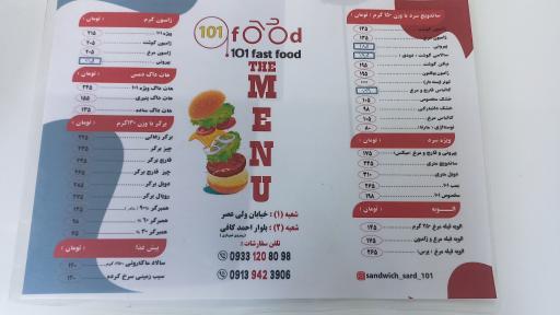 ساندویچ سرد 101 (فست فود) در سیرجان و خیابان ولی عصر واقع شده است. و از نظر موقعیت جغرافیایی در نزدیکی مراکز مهمی مانند موزه مردم شناسی سیرجان و فراتلکام و همچنین کافه رستوران سنتی چلچراغ، فست فود بام لند ، میوه فروشی بی بی، شیرینی وانیلا و آبمیوه وفالوده بستنی ریاحی قرار گرفته است.