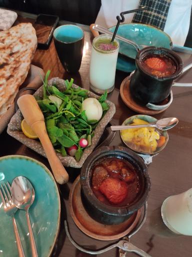 فوق العاده محیط دلچسبی دارن دیزیهاش حرف نداره. مخلفاتشون مثل سبزی و ترشی و سالاد تازه و با کیفیت بود. سنگکهای کوچیک و داغ براتون میارن که خیلی بامزست دوغشون خیلی خوشمزه بود. قیمت بالاست اما به نظرم ارزشش رو داره برای دو نفر با مخلفات شد ۲۱۸۰