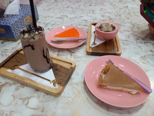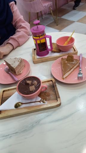 نمایش موقعیت منمحیط زیبا و شیک و پر نور.مناسب عکاسی،تولد. پرسنل خیلی خوش برخورد هستند.کیک تولدهای زیبایی هم داره. کیفیت و مزه ی خوراکی ها هم واقعا خوبه و قیمت مناسبه. شیک شکلات(۱۶۸)،چیزکیک لوتوس(۱۱۰)،چای ماسالا و هات چاکلت و حتی چای سیاه که خیلی خوب سرو شد عالی بود، چیزکیک هلو (۸۵)و کیک نسکافش بد نبود.