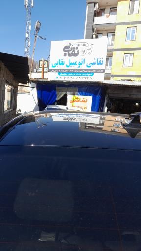 نقاشی اتومبیل نقابی در محله مهرویلا جنوبی کرج و خیابان معلم واقع شده است. و از نظر موقعیت جغرافیایی در نزدیکی مجتمع تجاری آراد و همچنین دفتر پیشخوان دولت- سعادت، رستوران یوسف، هایپر می، جگر سرای چاشنی شعبه مهرویلا و دفتر کارخانه کارتن سازی کارتن گلبرگ جاوید قرار گرفته است.