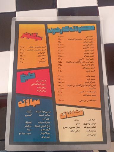 من اصلا راضی نبودم!! قیمت همه چیز حتی کره و روغن و خیار شور کنار غذا جدا بود.متاسفانه طعم غذا هم با توجه به قیمت اصلا خوب نبود. املت سبزیجات گرفتیم که سبزیجاتش کنسرو هویج و ذرت و نخود فرنگی بود داخلش که خام بود! همه رو جدا کردیم نخوردیم. موزیک بسیار بلند بود که حرف همو نمیشنیدیم (صحبت کردم و فقط برای ۵دقیقه کم کردن دوباره زیاد کردن) روی دیوار ها جملات خنک و بیمزه نوشته بودن !! مثلا «تخم مرغ همسایه غازه. در کارخونه همیشه بازه!!» معنی تخم مرغ همسایه غازه چی میشه؟! شلوغ بود و من متعجب شدم با این کیفیت و قیمت چرا شلوغه؟! من هیچ وقت کامنت نمیذارم اما اینجا خیلی بهم فشار آورد😂