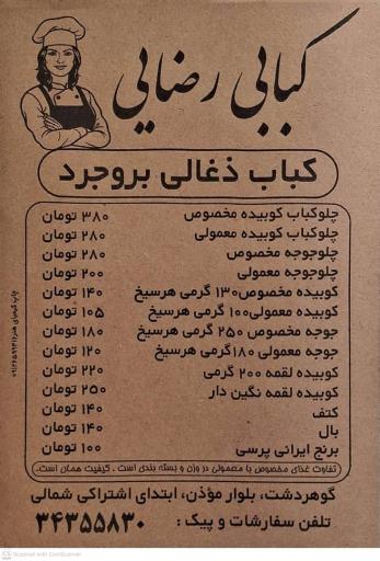 کبابی رضایی (کباب و حلیمفروشی) در کرج و خیابان اشتراکی شمالی واقع شده است. و از نظر موقعیت جغرافیایی در نزدیکی مراکز مهمی مانند شهربازی قلعه شادی شعبه کیامال و کیا مال و همچنین آشکده آبودان، کافی نت و لوازم تحریر مِهنگار، رنگ و ابزار دهستانی، مدرسه متوسطه اول صبح میعاد و فروشگاه لوکس دزدگیر آقای اسپرت قرار گرفته است.