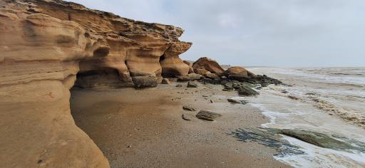 این مکان بسیار دلبر و زیباست در این مکان ماسه ها بسیار نرمه و به پای ادم اسیب نمیزنه وشیب کمی داره و بچه ها میتونن برن و با خیال راحت بازی کنن و ارامش بسیار بالایی داره و ساحلش خیلی خیلی تمیز هست
