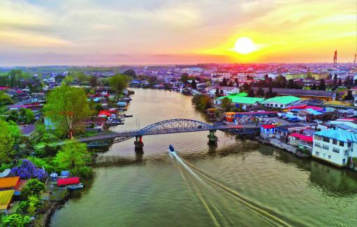 یکی از جاذبه های گردشگری شهر بندرانزلی که دارای چشم انداز فوق العاده است ( پل هوایی )