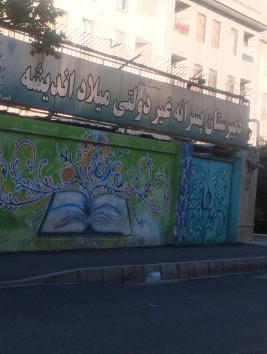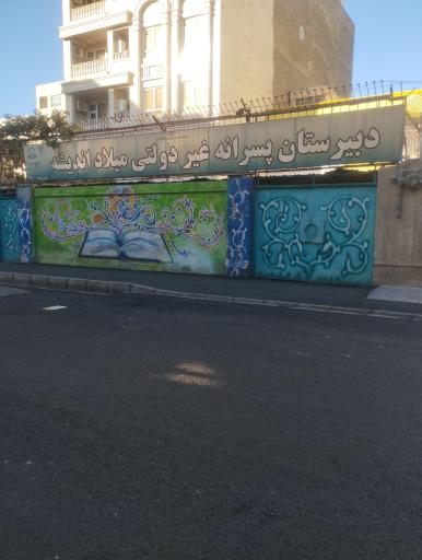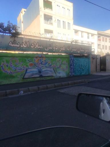 دبیرستان میلاد اندیشه (مدرسه) در محله فردیس فردیس و خیابان سی و چهارم واقع شده است. این مکان یکی از هشتاد و پنج مدرسه در محله فردیس فردیس میباشد و از نظر موقعیت جغرافیایی در نزدیکی مراکز مهمی مانند خانه بازی چشمک و پاساژ بعثت و همچنین قنادی مجلسی اسمعیلی مهبد، دفتر پلیس +10، سوپر مارکت مهدی، فلافل نوید و مسکن بزرگ یک قرار گرفته است. همچنین با توجه به نظراتی که کاربران در اپلیکیشن نشان به این مکان دادهاند میتوان گفت این مکان یکی از مدارس خوب این منطقه میباشد.