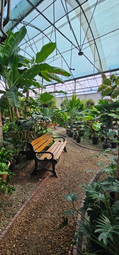 گلخانه بسیار زیبایی که با صبر و حوصله تبدیل به یک کافه زیبا با منظره استوایی شده است . داخل گلخانه یک برکه آب با ماهی های کویی ایجاد شده که خیلی دیدنی است . گل هایی زیبایی در آنجا پرورش میدهند که برخی بسیار بزرگ و نادر هسند .
