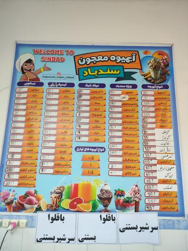 آبمیوه معجون سندباد (بستنیفروشی و آبمیوهفروشی) در خلخال و خیابان بوستان ۱ واقع شده است. و از نظر موقعیت جغرافیایی در نزدیکی رستوران و تالار پذیرایی تشریفات، نانوایی سنگک، بورس لاستیک بهروزی، باطری سازی ابی و فروشگاه ایمنی سینا قرار گرفته است.