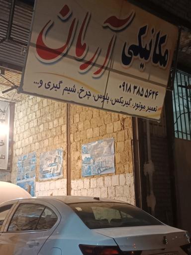 مکانیکی آرمان (تعمیرگاه و مرکز خدمات خودرویی) در محله شهرک ایثار کرمانشاه و خیابان چکاد واقع شده است. این مکان یکی از سیزده تعمیرگاه و خدمات خودرو در محله شهرک ایثار کرمانشاه میباشد و از نظر موقعیت جغرافیایی در نزدیکی سرزمین بازی زوتوپیا و همچنین فروشگاه برنج یاوری، تعویض روغن مهدی ، تعمیرگاه مکانیکی پژو فرانسه هادی، ایستگاه اتوبوس میدان ظفر و نانوایی قرار گرفته است.