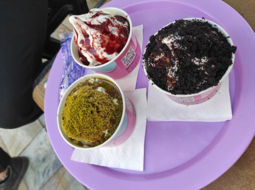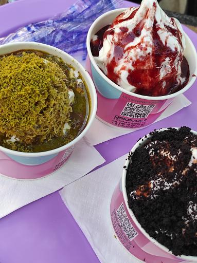 فضاش انقد کوچیک بود ما نشسته بودیم تا بلند شدیم سفارش بدیم جامونو گرفتن😐 متاسفانه مجبور شدیم داخل خیابون شلوغ سرو کنیم بستنی ها خیلی طعم جدید و خاصی ندارن یکم متفاوت ترن از بستنی ساده دبی چاکلتشو پیشنهاد میکنم