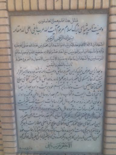 مختصری از زندگی سید عرب باغی: سيد حسين عرب باغي فرزند آقا سيد نصراله بن سيد صادق الموسوي از علما و فقهاي قدر اول و از قرآن پژوهان شهير و محدثان اخباري سده اخير اروميه و تاريخ معاصر است در قريه سعيد لوي اروميه ديده به جهان هستي گشود و در سنين جواني به شهر اروميه آمد و در زير توجهات عمش حاج سيد حسن كه از بنكداران شهر اروميه بود قرار گرفت. وي پس از اخذ معلومات متداوله زمان خود در مسجد جامع اروميه، عازم آستان قدس رضوي شد و مدت 8 سال مداوم از محضر استادان علوم ديني از قبيل آيت الله ترشيزي و ساير تلمذ كرد و از آنجا عازم عتبات عاليات شد و در شهر مقدس نجف در محضر علماي بزرگوار حضرات آيات چون محمد كاظم طباطبايي و آخوند ملا محمد كاظم خراساني و سيد محسن كوه كمري و شريعت اصفهاني و ديگران به تكميل معلومات خود پرداخت و پس از اجتهاد از اعلم مجتهدان زمان، راهي اروميه شد و به اجتهاد و ارشاد مردم پرداخت وي در سال 1329 در سن 75 سالگي در زادگاهش دارفاني را وداع گفت و در آرامگاهي كه به نام خود وي معروف است به خاك سپرده شد آيت الله عرب باغي از بنيانگذاران هلال احمر در اروميه است شركت در امور خيريه، تعمير مساجد، تقوا و پرهيزكاري فوق العاده از صفات مميزه اين سيد عاليقدر بود در ايام حيات خويش ميلياردها ريال وجوه شرعيه را صرف امور عمومي عام المنفعه مي كرد. بين مردم از احترام خاصي برخوردار بود بطوريكه آرامگاه وي هنوز هم مورد زيارت عده ای از مردم اروميه است. از نظر تأليفات بالغ بر 82 جلد كتاب دارد كه عمدتاً در فقه و اصول و اخبار و احاديث است همچنین معجزات بی شماری از این سید بزرگوار نیز بعمل آمده که معروف ترین ان:《زمانی که خواستند مقبره سید را نبش قبر کرده و جابجا کنند طبق گفته ی اهالی محل و بزرگان انجا جانور بزرگ و ترسناکی که شباهت زیادی به عقرب داشت مانع از این عمل شد و از ان پس مزار سید رونق بیشتری پیدا کرده و مورد توجه شیعیان قرار گرفته است و همچنین گذر کردن سید عرب باغی از رودخانه شهرچایی بدون غرق شدن نیز جزو همن دسته معجزات این سید عزیز میباشد》