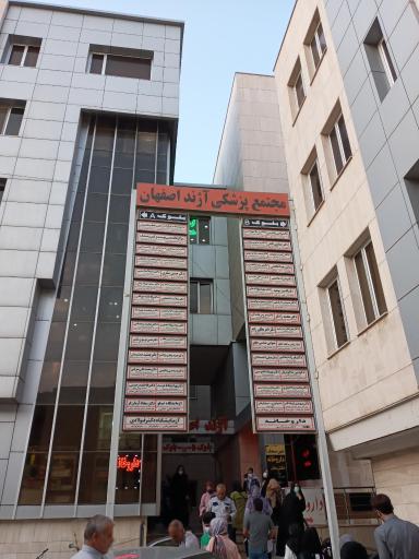 مجتمع پزشکی آژند اصفهان در محله نقش جهان اصفهان و خیابان آمادگاه واقع شده است. این مجتمع یکی از یازده مجتمع پزشکی در محله نقش جهان اصفهان میباشد و از نظر موقعیت جغرافیایی در نزدیکی مراکز مهمی مانند چرخ فلک، بیمارستان خورشید، آیینه چهارباغ ، موزه موسیقی اصفهان و پاساژ شکری و همچنین مجتمع تجاری تفریحی اصفهان مال، گیمنت هاگوارتز، مطب دکتر مهرداد طاهریون، هتل ونوس اصفهان و کلینیک صدف قرار گرفته است. همچنین با توجه به نظراتی که کاربران در اپلیکیشن نشان به این مکان دادهاند میتوان گفت این مجتمع یکی از مراکز پزشکی خوب این منطقه میباشد.