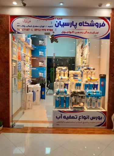 فروشگاه پارسیان ونمایندگی اکواجوی در پردیس و خیابان کنارگذر ملاصدرا واقع شده است. و از نظر موقعیت جغرافیایی در نزدیکی مراکز مهمی مانند خانه بازی بابیلون و مجتمع تجاری میلاد و همچنین اداره پست شهرستان پردیس، گروه سرمایه گذاری مسکن (مهر پردیس)، مجتمع آموزشی دانش بنیان، بیمارستان دامپزشکی شبانه روزی هوما و آموزشگاه زبان موسسه علوم و فنون کیش قرار گرفته است.
