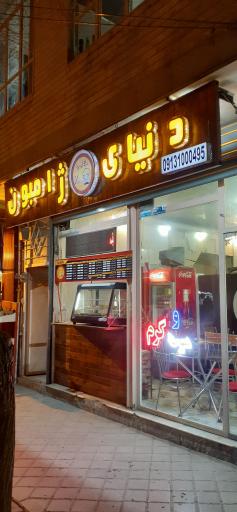 دنیای ژامبون (فست فود) در زرین شهر و خیابان امام خمینی شمالی واقع شده است. و از نظر موقعیت جغرافیایی در نزدیکی پاساژ تجاری الغدیر و همچنین پیتزا سارا شعبه زرین شهر، تولید پوشاک آراد، مسجد اعظم زرین شهر، کتابفروشی و لوازم التحریر آسمان و موسسه فرهنگی هنری آموزشی چند منظوره والفجر قرار گرفته است.