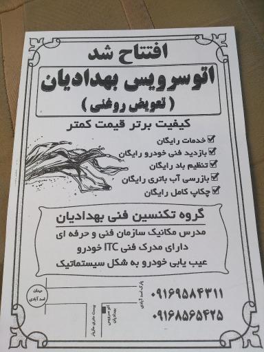 اتو سرویس بهدادیان (تعویض روغنی) در محله اسد آبادی خرم آباد و خیابان مازیار واقع شده است. این مرکز یکی از پنج تعویض روغن و اتوسرویس در محله اسد آبادی خرم آباد میباشد و از نظر موقعیت جغرافیایی در نزدیکی مراکز مهمی مانند خانه بازی فینگیلیا خرم آباد و مکان چهارشنبه بازار و همچنین پوشاک بچگانه، آشپزی ساکی، نانوایی فانتزی عبدی زاده، میوه بازار و پیتزا عمو حسن قرار گرفته است.