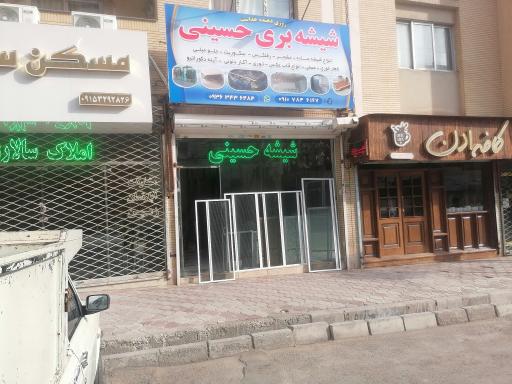 شیشه بری حسینی (فروشگاه شیشه و آینه) در محله رحمانیه مشهد و خیابان مجیدیه 27/8 - مجیدیه 33 واقع شده است. و از نظر موقعیت جغرافیایی در نزدیکی خانه بازی کودک و همچنین پیرایش مسیح، فست فود ترافیک ، آجیل روژین، خرازی علی و تعمیرات لوازم خانگی تکنوکار قرار گرفته است. همچنین با توجه به نظراتی که کاربران در اپلیکیشن نشان به این مکان دادهاند میتوان گفت این فروشگاه یکی از فروشگاههای شیشه و آینه خوب این منطقه میباشد.