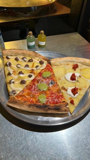 عالی بود واقعا به معنای واقعی محشر بود خیلی طعم لذید و خوبی داشت موزیک،فضا و دکور بیشار زیبایی داشت کارکنان خیلی خوش رفتار بودن و پیتزا هاش حرف نداشت سبک نیویورک بود و درکل همه چیزش خیلی خوی بود حتما برید و امتحان کنید پشیمون نمیشید قیمت ها هم نسبت به بقیه جاها خیلی به صرفه بود پیتزا ها به صورت ۱ قاچ بزرگ سرو میشد و فکر کنم بین ۲ تا ۳ اسلایس ی ادمو سیر کنه.