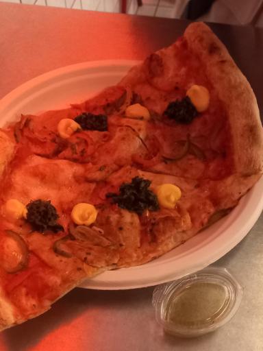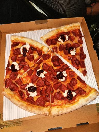 پیتزاها به صورت نیویورک استایل و اسلایسی سرو میشن که یک نفره هست و تقریبا به صرفه. همیشه هم خوشمزه بوده و با کیفیت و لذید. و چون جای زیاد برای نشستن نداره اکثرا همه Takeaway میگیرند.