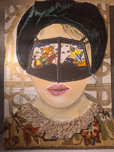 تابلوی " دم در مدرسه " در ابعاد A3 با رنگ آکرولیک روی بوم