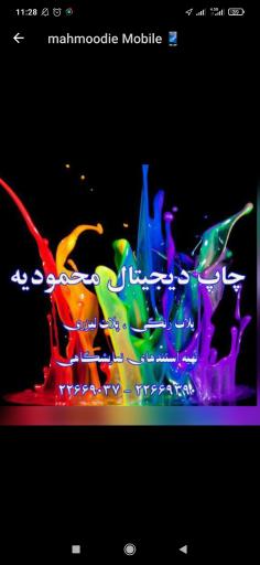 چاپ دیجیتال محمودیه (خدمات چاپ) در محله الهیه تهران و خیابان ولیعصر واقع شده است. این مکان یکی از سه خدمات چاپ در محله الهیه تهران میباشد و از نظر موقعیت جغرافیایی در نزدیکی مرکز تجاری سام سنتر و همچنین داروخانه دکتر فاطمه هدایتی، تلکسیران، باشگاه اسپین، موسسه زبانهای خارجی بیان سلیس و فروشگاه سفیر قرار گرفته است.