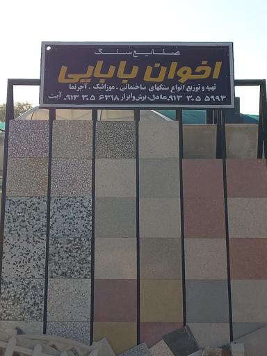 سنگ اخوان بابایی (ارائه خدمات مرتبط با صنعت ساختمان) در اصفهان و خیابان سلمان فارسی (مشتاق سوم) واقع شده است. و از نظر موقعیت جغرافیایی در نزدیکی تنظیم چراغ خودرو لایت، کارواش مشتاق، کالارسانان چاپار نمایندگی قاسم پور، سنگ آسمان و موبایل پاتریس قرار گرفته است.