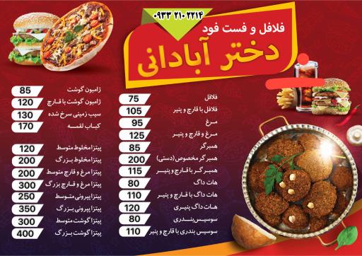 آدرس دقیق فست فود فست فود فلافل و فست فود دختر آبادانی، ساعت کاری، تصاویر و نزدیکترین ایستگاههای اتوبوس در ادامه برای شما قرار داده شده است. یادتان باشد در صورتیکه به این مکان رفتید، حتما نظرتان را در قسمت کامنت با ما و دیگران به اشتراک بگذارید.
