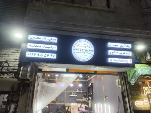 پرو دیتیلینگ (تعمیرگاه و مرکز خدمات خودرویی) در محله شریف مشهد و خیابان صدف 16 - انوشیروان 4 واقع شده است. این مکان یکی از چهل و هشت تعمیرگاه و خدمات خودرو در محله شریف مشهد میباشد و از نظر موقعیت جغرافیایی در نزدیکی آموزشگاه رانندگی اسلامی، کترینگ آذر، جگر ذغالی، ایستگاه اتوبوس معلم 56 و چلو کباب مجد قرار گرفته است.