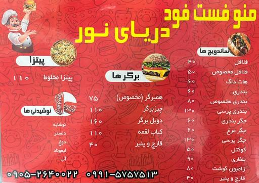 تهیه غذا و فست فود دریای نور (کترینگ و تهیه غذا) در اسلامشهر و خیابان ایران زمین واقع شده است. و از نظر موقعیت جغرافیایی در نزدیکی داروخانه بهناز مقدم، سالن زیبایی الین، دفتر اسناد رسمی 73، لبنیات سنتی دامداران و فروشگاه داکت اسپیلت قرار گرفته است.