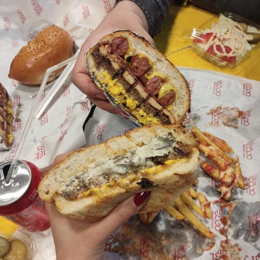 میتونم بگم یکی از بهترین برگر های ایران هست اما رژیمی نه، گوشت ها به بهترین حالت و طعم طبخ داده شدند ، نرمی و مرینیت کاملا اندازه بود ، بسیار لذیذ . نون ها تازه و نرم ، کیفیت پنیر هم خوب . گذاشتن برگر ها بر روی منقل که رده هاش روی نون معلومه هم نون رو ترد میکنه و یکم هم طعم دودی اضافه میکنه که بنظر من خیلی طعم فوق العاده و خاصی پیدا میکنه . یدونه چوریتسو برگر و یدونه اسلایس استیک برگر سفارش دادیم که به شخصه استیک برگر رو بیشتر ترجیح میدم ، امیدوارم در آینده حتما سالن دار بشه که واقعا میز های کوچیک در پیاده رو آنچنان جالب نبود . تنوع نوشیدنی ها هم کم بود . برخورد مناسب و زمان آماده شدن سفارش سریع بود