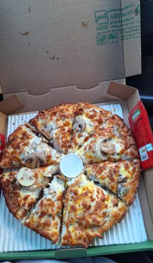 من قبلا از شعبههای دیگه هم غذا گرفته بودم اما کیفیت اینجا به طرز قابل توجهی بالاتر از بقیه شعباتش بود پیتزاها اصلاً طعم خاصی داشت و مزه نان کاملا عالی بود. امیدوارم کیفیت غذاها را همینجوری نگه دارن.طعم غذاها عالی بود و مقدارشون هم زیاد بود. یه مقدار زیاد طول کشید حاضر شدنشون و مرغهای سوخاری هم دیرتر آماده شدن. سرویس بهداشتیشونم تمیز هست.