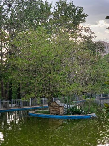 هم پاییز بینظیری داره هم توی بهار از بوی عطر گلها آدم مست میشه. پر از درخت توت هست و اونقدر توت روی زمین هست که وقتی رد میشی کفشت قرمز میشه. هواش بسیار مطبوعه. من بهش میگم پارک گربهها. یه عالمه گربه اونجا زندگی میکنن. رنگارنگ. دو تا استخر بزرگ داره که متأسفانه لایروبی نمیشه و بوی نامطبوعی گرفته. قبلن کلی مرغابی و اردک توی استخرش بود که الان نیستشون. امیدوارم استخر رو تمیز کنن و مرغابی و اردکها رو برگدونن