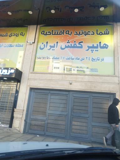 هایپر کفش ایران (شعبه غرب) (فروشگاه کیف و کفش) در محله سرو تهران و خیابان سرو غربی واقع شده است. این فروشگاه یکی از سیزده فروشگاه کیف و کفش در محله سرو تهران میباشد و از نظر موقعیت جغرافیایی در نزدیکی مراکز مهمی مانند شهربازی شادی و مرکز تجاری افق و همچنین کاردرمانی تاک، ایستگاه مترو میدان کتاب، کلینیک دامپزشکی حامی حیوانات، دفتر مرکزی دیار خودرو و فست فود خرگوشها قرار گرفته است. با توجه به نزدیکی این فروشگاه به ایستگاه مترو میدان کتاب، برای دسترسی راحتتر و کمک به داشتن هوایی پاکتر، میتوانید از وسایل حمل و نقل عمومی برای مراجعه به آن استفاده کنید.
