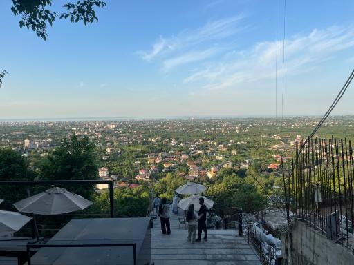 ویو عالی داره سرسبز و زیبا.. در انتهاش دریا هم دیده میشه. ✌🏻 سفارشمون کیکش بسیار بافت خوبی داشت، بستنی وانیلی هم معمولی بود.