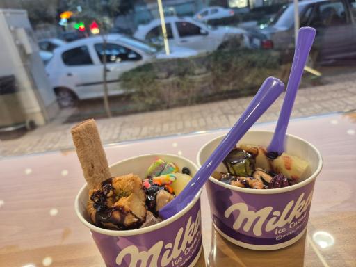 اصلا راضی نبودم صندوقدار که به شدت بی حوصله بود و به زور جواب میداد! بنظرم بهداشتی ام نیست ک بستنی و ظروف تو خیابون باشه ! تاپینگ هم تنوع خیلی کمی داشت و واقعا طعم موندگی و سفتی حس میشد ! ظرف سس هم که گذاشته بودن خالی بود ! خودشون یکم فشار دادن که مقداری سس رو بستنی م ریخته بشه ! برای روز دختر اینجا رو انتخاب کردم ولی اصلا مناسب نبود! و دیگه انتخابم اینجا نیست.