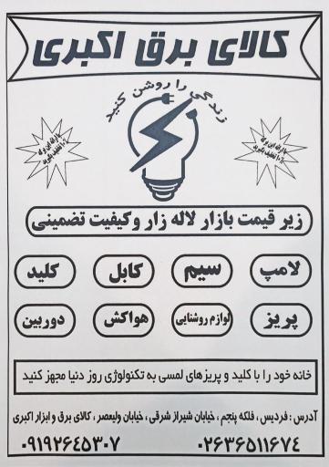 فروشگاه رنگ و ابزار اکبری (ابزارفروشی) در محله فردیس فردیس و خیابان ولیعصر واقع شده است. این فروشگاه یکی از بیست و پنج فروشگاه رنگ و ابزار در محله فردیس فردیس میباشد و از نظر موقعیت جغرافیایی در نزدیکی بازار طلای البرز و همچنین سبزی کده بهار، سنگکی، حکمت کارت نیروهای مسلح، پوشاک ترمه و آرایشگاه حمید قرار گرفته است.