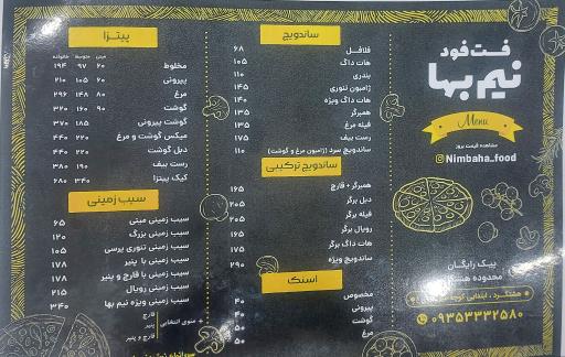 فست فود نیم بها یکی از فست فودهای شهر هشتگرد است که در قرار گرفته است. شماره تلفن فست فود نیم بها 09353332580 است که هر اطلاعاتی در مورد این مکان نیاز داشته باشید در اختیار شما میگذارد.