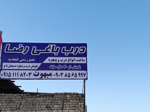 درب باغی رضا (کارگاه و مرکز ارائه خدمات صنعتی) در خراسان رضوی، شهرستان مشهد و بلوار توس واقع شده است. و از نظر موقعیت جغرافیایی در نزدیکی خدمات خودرویی گاراژمن، کنگره 60 نمایندگی غزالی، رنگ و ابزار و لوله و لوازم بهداشتی حقیقی، ایستگاه اتوبوس ناظر آباد و دزدگیر و ردیاب سینا قرار گرفته است.