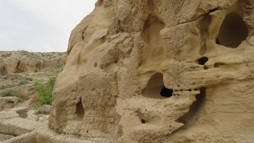 اینجا منطقه باستانی مربوط به 1500 سال پیش بود که به گفته راهنمای ما بخاطر سیستم آب انبار و فاضلاب پیشرفته ای که داشت محل تجمع کشتی های تجاری و مسافری برای خرید آب آشامیدنی و تجارت بوده است و در زمان خودش در دوره ساسانی منطقه ای پر رونق با 300 هزار نفر جمعیت بوده است. و به دلیل آزادمنشی دینی در این بندر بینالمللی پیروان مذاهب گوناگونی همچون زرتشتیان، مسیحیان، مانویان، یهودیان، بوداییان و اقوامی همچون رومیان، یونانیان و چینیها در این بندر زندگی میکردهاند. گورستانهای بازمانده از پیروان دینهای گوناگون در این شهر باستانی نشانگر آزادی دینی این بندر ایرانی است. منطقه آبگیری و آب انبارهای سیراف 4 سایت بود که همه تقریبا شبیه به هم بودند و ما از یکی از آنها بازدید کردیم.اولین بار وایت هاوس انگلیسی در این منطقه کند و کاو میکند و آثاری هم پیدا میشود و بعضی از آنها مخفیانه به بیرون از ایران و به موزه های خارج برده میشود. منطقه کلا حدود 100 چاه داشته با عمق هایی تا 130 متر که آبگیرهای کوچکی در اطراف انها قرار داشته که به سیستم جالبی که هنوز هم نتوانسته اند دقیق از آن سر در بیاورند به هم متصل بوده و نهایتا آبها را به چاه منتقل میکردند.این آبگیرهای کوچک تر به شکل افقی و در قسمتهایی به شکل عمودی بودند که دلیل ان را هم هنوز نفهمیدند. البته در دوران اسلامی از بعضی از این آبگیرها چون به اندازه قبر بوده برای دفن کردن استفاده کردند. در داخل دره اصلی که آبگیر و سد های کوچکی بوده در دیواره هایش گوره دخمه هایی بوده که نشان میداده گورهای اصلی مردم در قبل از دوران اسلامی در انجا بوده است.که میگویند اگر به عمق دره بروید هنوز آثار استخوان ها را مشاهده خواهید کرد که البته ورود به آن قسمت ممنوع است. چاهها در قسمت بالایی آنقدر عمیق است که اگر چیزی داخل چاه بیندازید باید حدود ده تا بیست ثانیه منتظر بمانید تا صدای آنرا بشنوید. همینجا یه نکته ای رو از لیدرمان برای اولین بار یاد گرفتیم که برای همه بگویم که همه رعایت کنند.ایشان میگفت که برای سنجش عمق چاه در بازدیدهایتان سنگ به داخل چاه نیندازید چون با توجه به حجم بازدید کنندگان اگر هر کسی یک سنگ بیندازد خیلی زود این چاهها پر و نابود میشوند. خیلی از این چاهها هم بر اثر همین کار اشتباه یا پر شده بودند یا دیگر آبی نداشتند ، راه جایگزین اینه که یک بطری آب همراه داشته باشید و از بالای چاه مقداری از آب بطری را خالی کنید و گوش بدهید با ریختن آب از بالا درون چاه همان صدا می آید منتها چاه دیگر به مرور زمان خراب نخواهد شد. در همان زمان درست کردن این مجموعه برای اینکه نشان دهند چقدر خاکبرداری از ان کوه شده است.یک تکه از کوه اصلی را نگه داشته اند.اطراف چاهها رو در همان زمان احداث طوری کنده اند که اگر زمانی سیلابی آمد داخل چاه نریزد و از اطراف چاه رد شود.در داخل یکی از این صخره های خاکی دو گور وجود داشته که مربوط به یک شاهزاده دختر و یک شاهزاده پسر بوده که درب آن با همان جنس مسدود بوده و در زمان انگلیسی ها کشف میشود و البته الان داخل ان چیزی وجود ندارد و فقط جای آن گورها مشخص است. متاسفانه مراقبت دقیقی از این مجموعه نمیشود و با بی دقتی گردشگران ایرانی هر روز وضعیتش بدتر میشود.