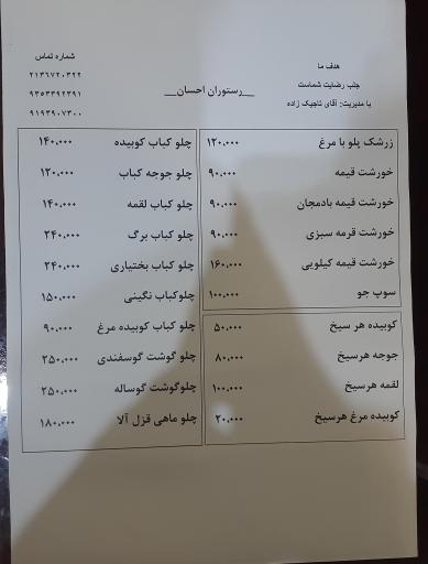 شما میتوانید اطلاعات و آدرس دقیق این رستوران را در ادامه ببینید. یادتان باشد اگر به رستوران احسان رفتید، حتماً نظر خودتان را در بخش نظرات با ما و دیگر کاربران به اشتراک بگذارید.