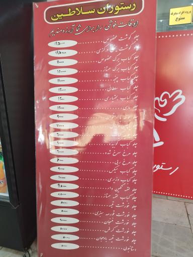 رستوران سلاطین در محله کلاته برفی خراسان رضوی، شهرستان مشهد و بلوار شاهنامه واقع شده است. و بهصورت شبانهروزی به مراجعهکنندگان خدمات ارائه میدهد این رستوران یکی از هشت رستوران در محله کلاته برفی خراسان رضوی، شهرستان مشهد میباشد و از نظر موقعیت جغرافیایی در نزدیکی ایستگاه اتوبوس شاهنامه 22، دبستان سکینه صفار نجیب، کبابی و مزه سرای کرمانج، کود بذر گیاهبان و خشکشویی و سفیدشویی سجاد قرار گرفته است.